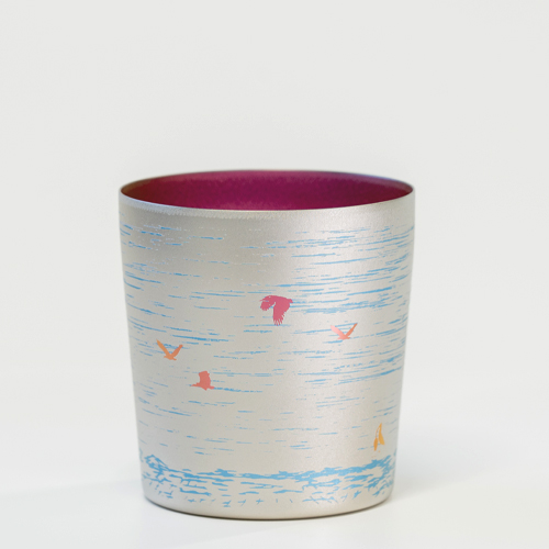 | 変わらない美しさを保つタンブラーに、越後平野を優雅に舞う朱鷺を配しました。豊かな自然への祈りを込めた特別なタンブラーです。 |