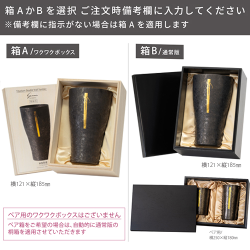 備考欄に「箱A」または「箱B」とご記入下さい