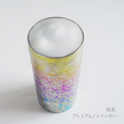 問い合わせる虹と同じ原理で発色するカラーに結晶華飾・磨き・エッチング等の加工技術を織り交ぜ新鮮な仕上がりに。二重構造で表面に熱が伝わりにくく熱い飲み物も楽しめます。