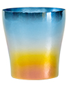 虹や蝶と同じ原理で発色するチタンカラー。表面の透明な酸化膜の厚みをナノ(nano)単位でコントロールして色を取り出します。加工がむずかしいチタンをここまで美しく仕上げられる技術は、HORIEが世界に誇るものです。 |